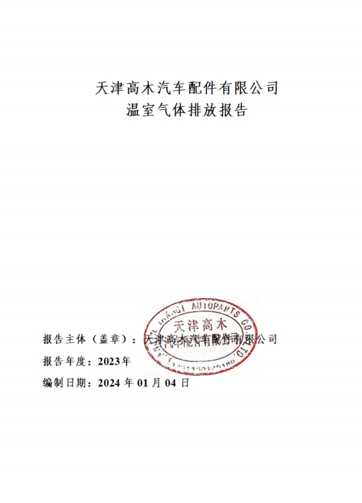 天津高木汽車配件有限公司2023年度溫室氣體排放報(bào)告